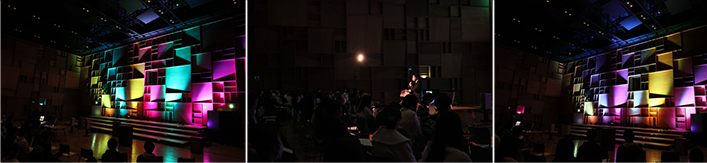 音の響きに配慮した音楽専用ホール全方位にスピーカーを配置し、楽曲の雰囲気に合わせた空間演出が来場者を圧倒しました。