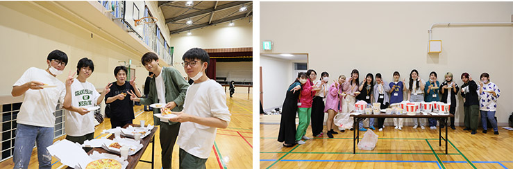 また、軽食も用意され、参加学生はそれぞれのテーブルで他学科の学生と親睦を深めていました。