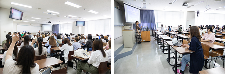 出席した110人あまりの学生は、熱心な表情で授業に参加していました。