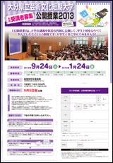 大学の講義を県民のみなさまに公開して、学生と机をならべて学んで頂くという制度です。学生と共に学んでみませんか。「芸短オープンカレッジ」同様、美術・音楽といった芸術系から、語学・情報といった人文系まで、幅広い授業科目が受講できます。