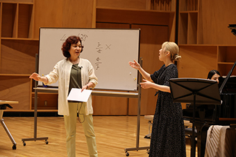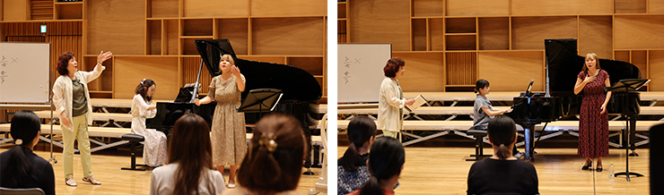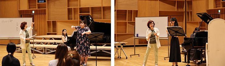 講義では、1節ごとの表現方法や発声イメージなど、細やかな指導をいただきました。またオペラ曲では、その内容や役の立ち回り、感情を意識した歌い方など、豊富な経験を学生にご教示くださり、受講した学生は短いレッスンの中で確実な成長を見せていました。