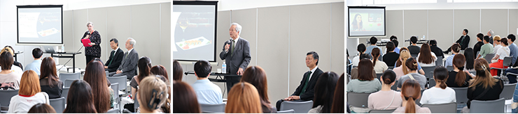 丸山大使は「海外では、独りでも相手から日本の代表として見られることになる」と話し、相手の文化を知ったうえでの配慮したおもてなし、よく好まれる日本の食べ物や嗜好品についてを惜しみなくご教示くださりました。学生は実体験からの貴重なお話に興味深く聞き入り、質疑応答ではより講義内容に踏み込んだ質問が挙がりました。