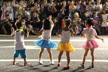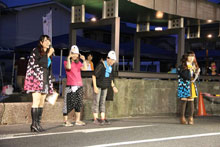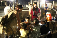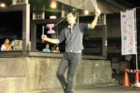 毎週木曜昼休みに集まり企画運営会議を行い、3ヶ月にわたり準備を行いました。そしてその努力が、この7月23日(火)19:00~22:00に開花しました!ステージでは、地元ダンス教室、大分県立芸術文化短期大学ダンスサークルやアニメソングサークル「リバーシブル」、情報コミュニケーション学科卒業生によるジャグリング、地元の書道家による書道パフォーマンスなどが行われ、大いに賑わいました。