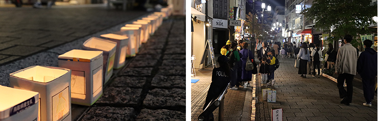 当日は、輪投げ、射的、ヨーヨー釣り、フェイスシール、フォトスポットなどが商店街に設けられ、非常に多くの方々に来場を頂きました。また夕方からは大分市内の園児に書いてもらった絵をキャンドルナイトとして点灯し、沢山の方々に見にきて頂きました。