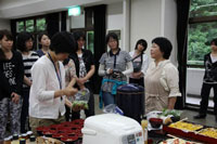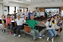 この日に大分から来たグループと合流し、竹田のまちなかに移動しました。竹田のまちではちょうど夏過し(なごし)のまつり。まちなかの取材を行ったあと、竹田商工会議所でたけた食ネットのみなさんと交流、今後の活動について意見交換を行いました。わたしたちの生活のあり方と地方の再生など、考えさせられることの多い研修でした。