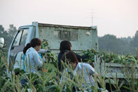 翌日は3時から4時起き、5時までにとうきび農家の卯野農園さんに集合。農家民泊さんとお別れして、とうきび畑へ。夜明け前のとうきびはメロンより糖度が高く、その甘いとうきび畑で丸かじりしました。フィリピンからの研修生のみなさんと一緒に収穫作業した後、道の駅すごうでの第8回とうきびフェスタにボランティアで参加しました。