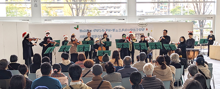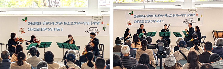 12月3日(日)、大分県立美術館(OPAM )1 階アトリウムにて「iichikoグランシアタ・ジュニアオーケストラがOPAMにやってきた」が開催され、本学在学生、卒業生、教員が参加しました。
