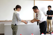 全24のデザイン案から、「鈴らん」代表の鞭目欄市さんをはじめ、ネット販売のwebページを手がけるデザイナーの方、本学教員らが審査を行い、最優秀賞に美術科ビジュアルデザイン2年の丸山愛さんが、優秀賞には美術科ビジュアルデザイン2年の西本美穂さんと専攻科造形専攻ビジュアルデザイン1年の首藤紗映香さんが選ばれました。
