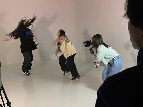 メディアデザイン映像ゼミでは、短大1年生が講義「デザインⅠ」において、地元エンターテイメント企業「Jエンタープライズ」所属のダンスユニット「Bloom」のダンス映像を制作しました。