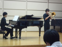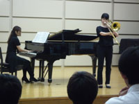 「学内演奏会」は、早い段階から舞台上、それも公開された場で演奏する経験を積ませようということを目的にカリキュラムに組み入れられているもので、2年生を対象に演奏系コース(作曲コース含む)の学生が出演します。