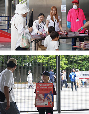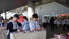 私は主にパンフレットの配布を行いました。来場なさった方々が手渡したパンフレットを見て笑顔になる姿を見たときや、感謝の言葉をいただいたときに、このボランティアに参加して良かったと感じました。