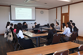 今回の訪問では、展示室の見学の後、別府市役所の担当者からは別府竹細工の歴史と現状についての説明が、会館の館長からは会館の取り組みについての説明が行われました。