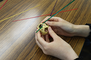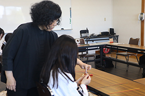 学生たちは、訪問の最後に、竹鈴の製作を体験しました。