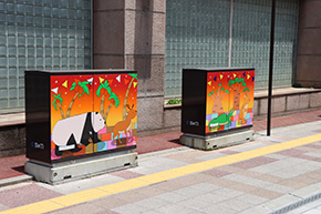 ポルトソール通りの電線地中化工事に合わせて、歩道・車道・地上機のデザインを行うプロジェクトを2020年度からサービスラーニングの一環として開始し、学生達のデザインが正式に大分市に採用されて、この度、商店街通りが完成しました。400mの通りには電線もなくなり、学生達がデザインした歩道・車道に加え、6大陸をイメージした地上機も9台設置され一新されました(総事業費は12億円)。