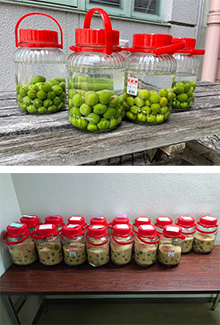 全学生を対象に募集を行ったところ45名の応募があり、5月25日(土)に梅の実を収穫した後、キビ砂糖に梅を漬けこみました。(キビ砂糖16kg,梅の実16kg)