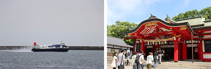 活動では、春日神社に集合し、西大分地域一帯の清掃活動を開始しました。春日神社、神宮寺浦公園、かんたん港園、王子神社などを回りながら、担当教員である綾部准教授から、それぞれの歴史や柞原八幡宮、さんふらわー号、ホーバークラフトなどの説明を受け、西大分の歴史と観光資源について学習しました。