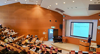 説明会では、弁理士法人 藤本パートナーズ副所長の野村慎一氏(弁理士)をお招きし、製品のデザインを保護する意匠制度の趣旨・概要などについて実例を交えて講義がありました。学生からは、侵害訴訟の実務に関する質問や、デザインの権利が仮想空間に及ぶのか等について質問がありました。この講義を受講した学生はコンテストへの応募資格が得られます。