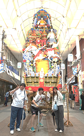 7月15日(日)、国際総合学科の堤研究室(歴史観光学研究室)では「大分市の観光資源には何が不足しているのか?」という課題に対して、卒業論文で考察していくことを目的に、卒研生2名と国重要無形民俗文化財である博多祇園山笠の現地視察を実施しました。