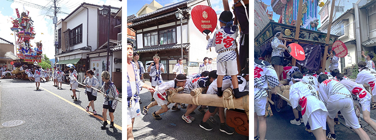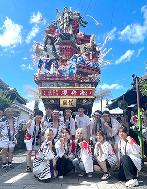 今年度から着任された堤講師は「自身は囃子方、学生は曳手、押手として若宮町さんに貢献することができて感無量でした。学生たちが日田の〝一流〟の文化や〝本物〟に触れ、大分市との違いを考察してくれたらと思います。また、芸短で祇園囃子の演奏会を聴いた学生からは、『実際はお囃子が日田の街並や山鉾、町衆の活気とセットであることが良く分かった。現地に行かなければ理解できなかった。』との所感を聞けて嬉しかったです。今後、府内祇園祭再興に向け、様々な面でこの経験を活かしていただければと思います。」と話されていました。
