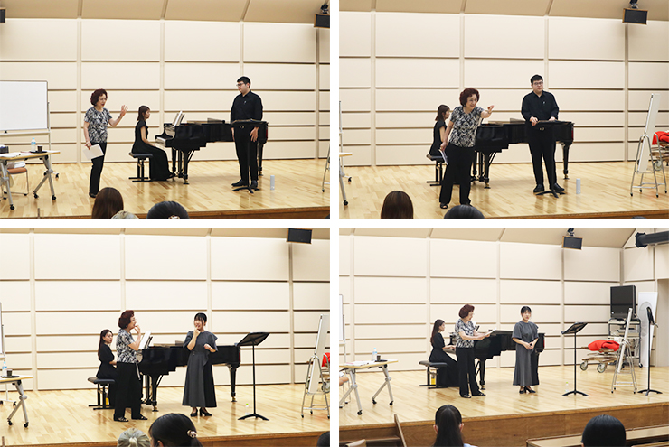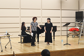 三縄みどり先生による声楽公開レッスンを、本学小ホールで行いました。8月9日(金)~12日(月・祝)の4日間で音楽科2年生と専攻科生が受講しました。