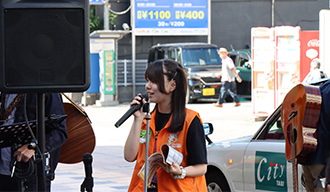 このイベントに約210組・700名の演奏者が参加しました。本校もサービスラーニングの一環として学生達も支援活動に参加し、MC(進行役・司会)や運営ボランティアとして活動を行いました。当日は天候も良かったことから、多くの人々が参加しました。