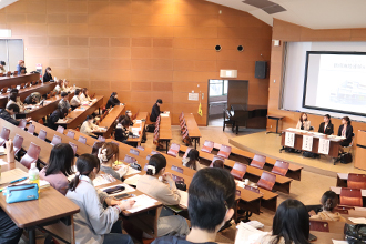 就活での体験談や入社の決め手、入社前とのギャップや会社の雰囲気など、学生が気になるリアルな内容をはじめ、1日の仕事の流れややりがいといった実際に働いてから分かったことを話してくださり、学生たちもメモを取りながら耳を傾けていました。