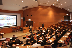 春休み中にもかかわらず多くの学生が参加し、各教室に分かれて、それぞれの興味を持った企業・団体のブースを訪問し、プレゼンテーションを聴きました。学生たちは、メモをとりながら熱心に企業・団体の説明を聞いていました。