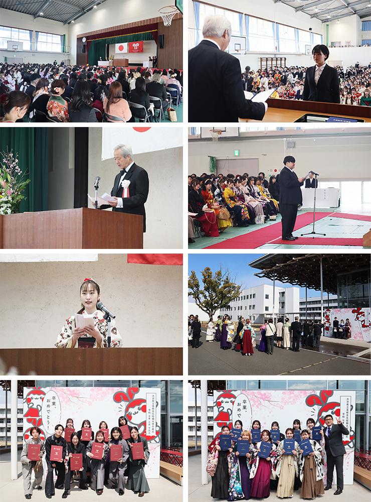 3月19日(水)、第63回卒業式・第45回専攻科修了式を本学体育館において執り行いました。 音楽科の学生によるオーケストラの演奏が行われる中で開式した卒業式・専攻科修了式には、尾野賢治副知事、嶋幸一県議会議長ほか多くの来賓にご臨席いただきました。