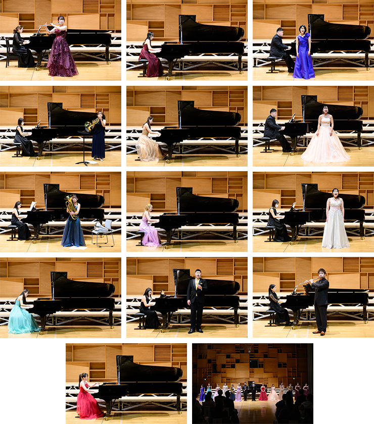 3月17日(月)、本学音楽ホール棟音楽ホールにて「第63回卒業演奏会」を開催しました。選抜された2年生14名が出演し、フルート、ピアノ、声楽、ホルン、ユーフォニアムといった多彩なプログラムを披露しました。