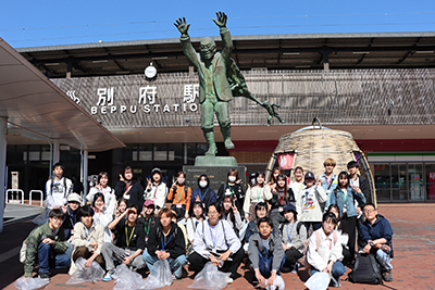 4月26日(土)に、サービスラーニングの一環として別府市の清掃活動を実施し、35名の学生が参加しました。