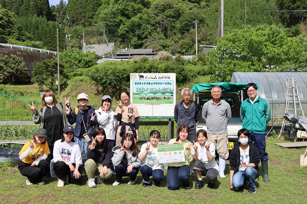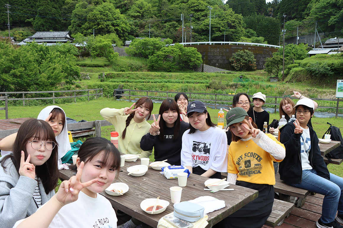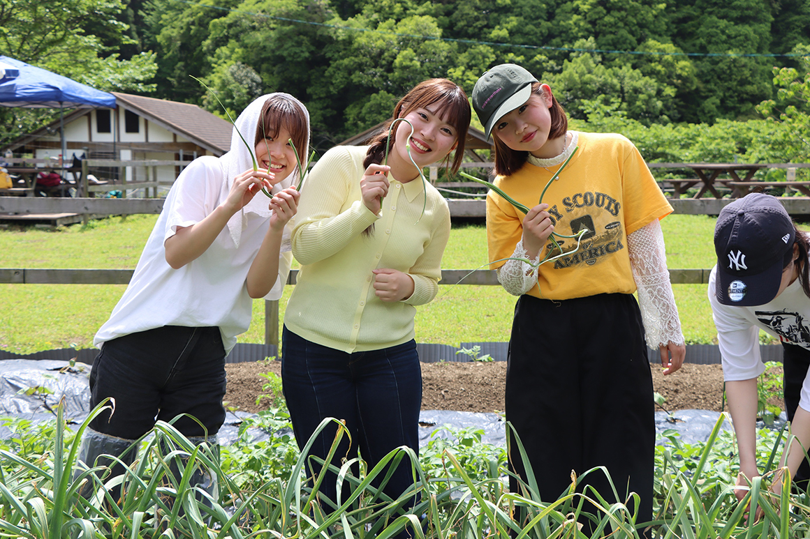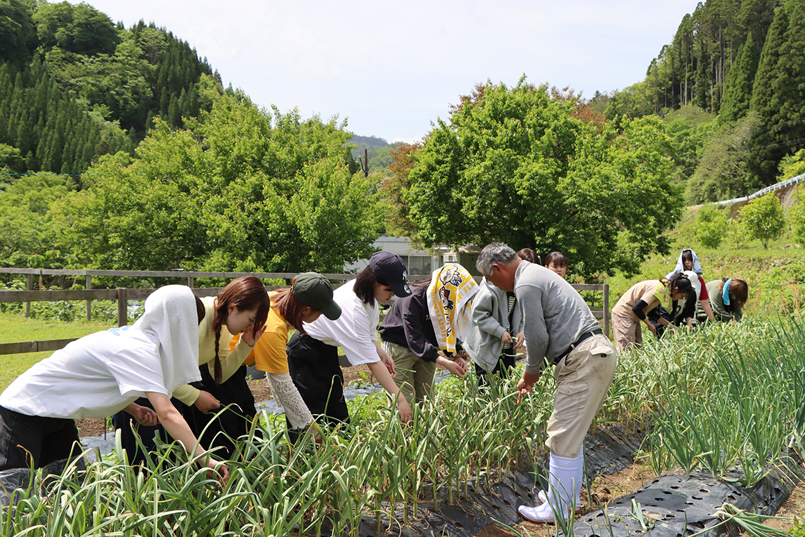 活動では、NPO法人おおいた環境保全フォーラムの内田桂理事長から環境保全の取り組みについてご説明をいただいた後に、ととろの森自然学校の圃場でニンニクの芽の摘み取り作業などを行いました。また昼食は、NPO法人の方々と一緒にバーベキューを行ったり、隣接する川で川遊びをして交流を深めました。