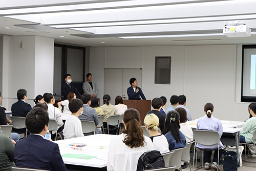 5月21日(水)に、九電大分ビルにおいて、2025年度の「おおいた活性化ネットワーク」の第1回会議が開催されました。大分活性化ネットワークは、大分青年会議所(JCI)が毎年実施している活動の1つで、大分県内の大学生が協力をして、大分のまちを活性化することを目的として取り組まれているものです。本学ではサービスラーニングの一環として取り組み、今年度で15回目の参加になります。会議には、大分県立芸術文化短期大学、大分大学、日本文理大学、立命館アジア太平洋大学(APU)から約40名の学生が参加しました。