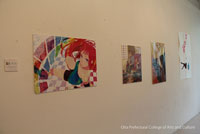 ビジュアルデザイン2年の安藤萌美さん、内野優子さん、高橋若奈さん、泥谷夏輝さん、山本愛さんの個性豊かな5人が、アナログイラストやデジタルイラスト、写真など、それぞれが独自に制作に取り組んでいる作品を展示しています。