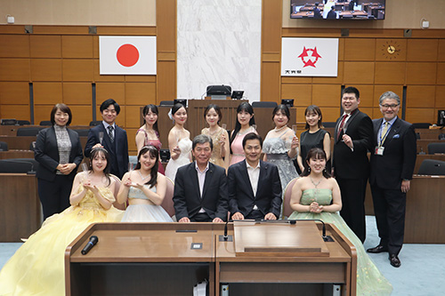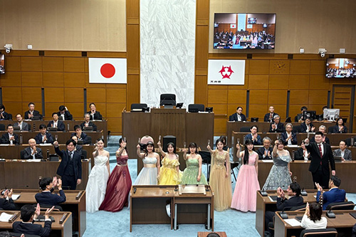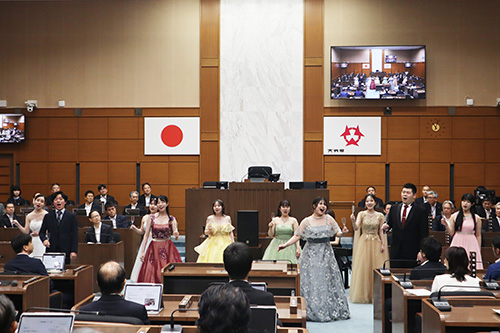 大分県議会 嶋 幸一議長より「議場が華やぎました。とても素晴らしい演奏をありがとうございました」とのお言葉をいただき、議員の皆さまからの盛大な拍手のなか終演しました。