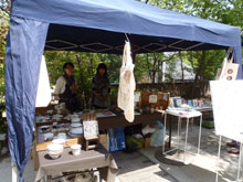 このイベントでは、アートと雑貨のお店「peu a peu」にて陶器・染物・オブジェの展示販売をしました。湯布院の緑豊かな自然の中で、たくさんの方々の出会いがありました。また、他の出品作家さん達の作品を見たり、話たり、素敵な時間となりました。
