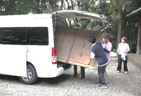 8月26日(火)、大分市の弥栄神社が所蔵する「素戔嗚尊八岐大蛇退治図絵馬」の取り外し作業とクリーニング、調査を実施しました。