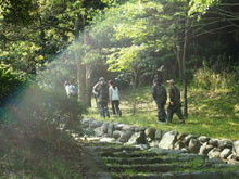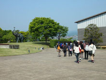 4月28日(日)、おおいた上野の森の会4月例会(毎月第4日曜に活動)に、本学学生36名が参加しました。この日は、学生みなさんに上野の森について知ってもらうために、4班に分かれて森の散策を行いました。大分市美術館から水辺広場などを経て、上野の森を案内してもらいました。その後、椎茸原木のコマうち作業を体験し、野草や山菜の天ぷらをごちそうになりました。5月26日(日)は森の整備作業を行います。5月28日(火)9:00~10:30の地域社会特講Ⅱでは、おおいた上野の森の会事務局長池松信子さんにおいでいただき、上野の森のお話や人と森との関わり方について、講演をお願いしています。