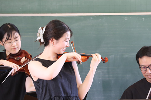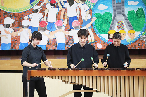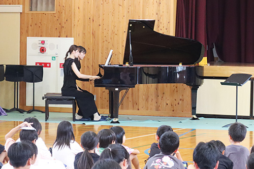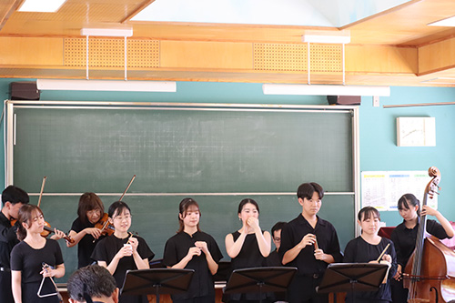 9月8日(月)に宇佐市立北馬城小学校、9月9日(火)に中津市立上津小学校にて、令和7年度の地域巡回演奏会を開催し、本学音楽科と専攻科音楽専攻の学生たちが参加しました。