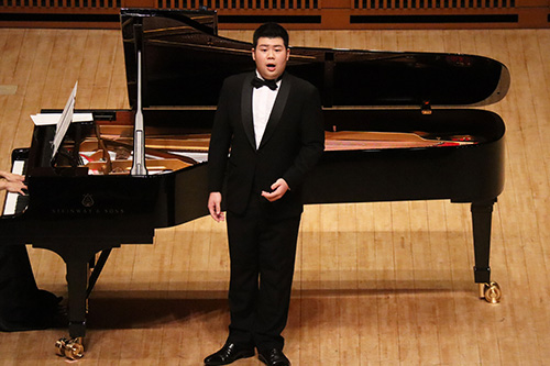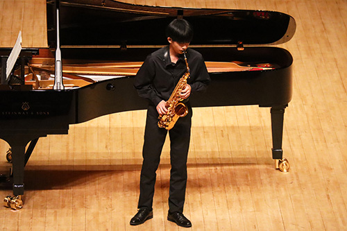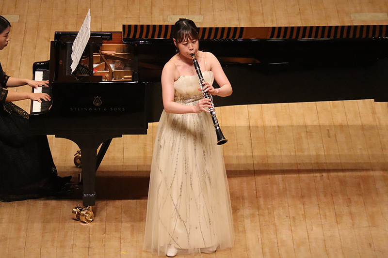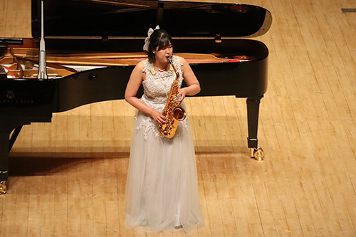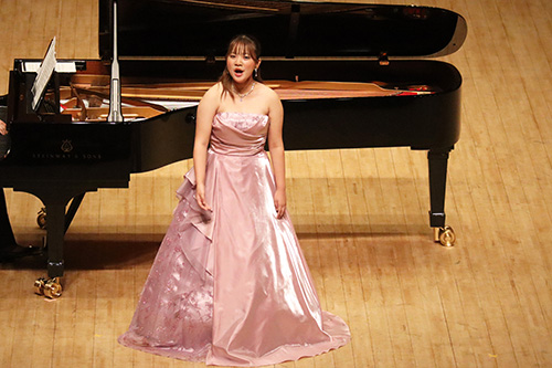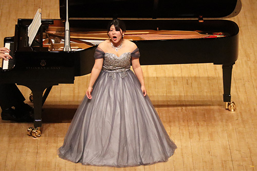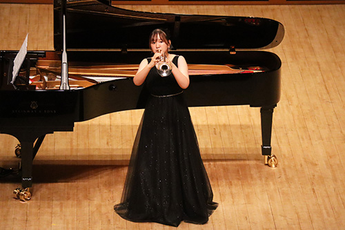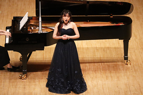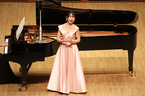 本学音楽科・専攻科音楽専攻の各コースから声楽・ピアノ・管弦打、前期実技試験成績優秀者を選抜し、独唱・独奏曲による演奏を披露するもので、今年は16名の学生が出演しました。