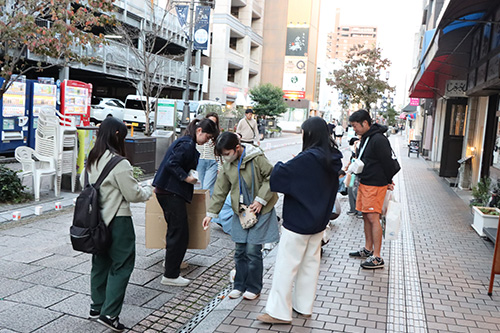 11月1日(土)に、大分市にある府内五番街商店街において、サービスラーニングの一環として「ふないキッズフェスタ2025」を開催しました。この活動は、大分市府内五番街商店街の活性化を支援することを目的として取り組んだもので、約60名の学生が参加しました。今回の活動を実施するにあたり、商店街組合の皆さんに地域社会特講Ⅰ(前期)で講義を頂き、その後は学生が主体となる形で準備を進めてきました。