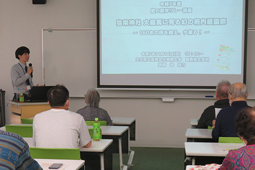 11月16日、第3回「豊の国学リレー講座」において、国際総合学科の堤先生が「弥栄神社 大絵馬に見る幻の府内祇園祭~160年の時を超え、今甦る!~」と題して講演を行いました。