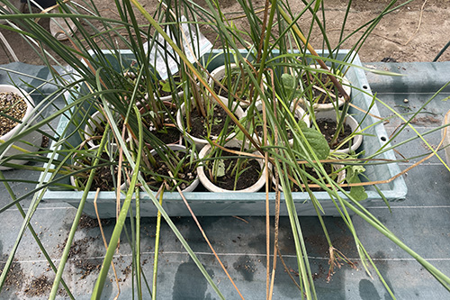 今回、鹿児島大学では奄美大島産(大和村名音)および十島村産(子宝島)の七島藺を採取しました。(橋本五郎衛門が七島藺をトカラ列島から持ち帰ったとされる伝承に関連する重要な産地)