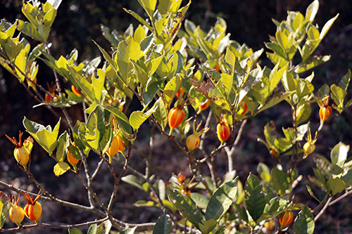 1月17日(土)に、サービスラーニングの一環として、大分市野津原福宗地区において、くちなしの収穫支援を行いました。くちなしは食材や繊維の着色料(黄色)として用いられるほか、大分県内では臼杵市の郷土料理である「黄飯」にも用いられています。