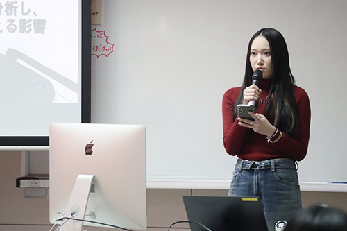1月26日(月)、27日(火)の2日間にわたり国際総合学科の卒業研究発表会が行われました。 12の研究室の分かれて2年間の集大成である卒業論文の概要を発表しました。 学生一人ひとりが積み上げてきた経験や知識が詰まった発表となり、学んだ外国語を取り入れた発表や日本と海外の文化との違いの検証、歴史に関する研究など、多種多様な研究発表となりました。