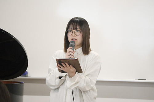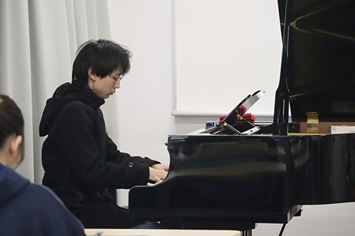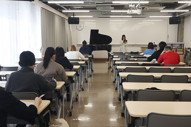 発表者各自が設定したテーマに基づいて、楽曲分析をした研究の成果を発表しました。ピアノを使用するなど、学生それぞれが2年間で学んだ知識を活かした発表となりました。