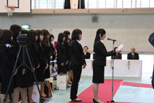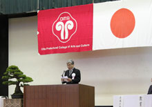 本学は、県立となっていますが、七年前から公立大学法人という独自経営を行う組織になっています。芸術系として美術科と音楽科、人文系として国際総合学科と情報コミュニケーション学科の四学科と、それに加えて、造形と音楽の二つの学士号が授与される認定専攻科から成っています。この認定専攻科では、今春5回目の修了生を出し、「芸術学」学士号取得者は開設後五年間で二百名を超えることになりました。四年制大学と同じ学士号をとることができるコースですから、大学院へ進学し、すでに修士号を獲得した先輩も出ています。専攻科に進まれる皆さんは、一層の専門性を獲得するために、自信を持って更に学習を重ね、所期の成果を挙げられるよう心から願うものです。