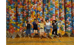 掲示板にある写真を見て、楽しそうな雰囲気で風船作りもしてみたかったから参加しました。たくさんある風船を膨らます人と、それを結ぶ人がいて、わたしはひたすら結ぶ係りをしました。たくさん風船を結んで結んで結びまくってもなかなか減らなくて大変でした。手が痛くなったけれどカラフルでたくさんの風船は綺麗でした!