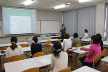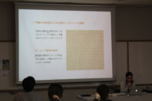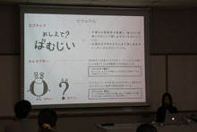 一つ一つの学生プレゼンに対し、工藤さんが丁寧にコメントを加えていきました。「見る人に対する優しさがあふれていて、上質で、子どものことを大事に考えている」「文字色の使い方を考えるとよい。黒色は強すぎるので、トーンを変えるとよい」「自由な発想がよい。モチーフがばらばらなのがおもしろい」など指摘されていました。