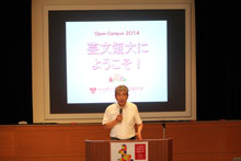 中山欽吾学長は、「ぜひ、先輩たちに芸文短大の話しをたくさん聞いて、大学の雰囲気を感じ取ってください。先輩たちの話しを聞けば、より芸文短大の事が理解できると思います」と話されました。