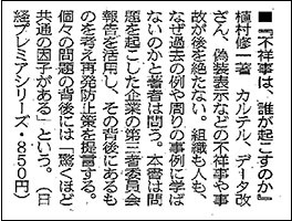 本書では、近年いろいろな組織や企業で起きている不祥事について、今年の出来事を含む様々な事例を取り上げ、不祥事はなぜ起きるのか、どうしたら防げるのかを、わかりやすく解説しています。